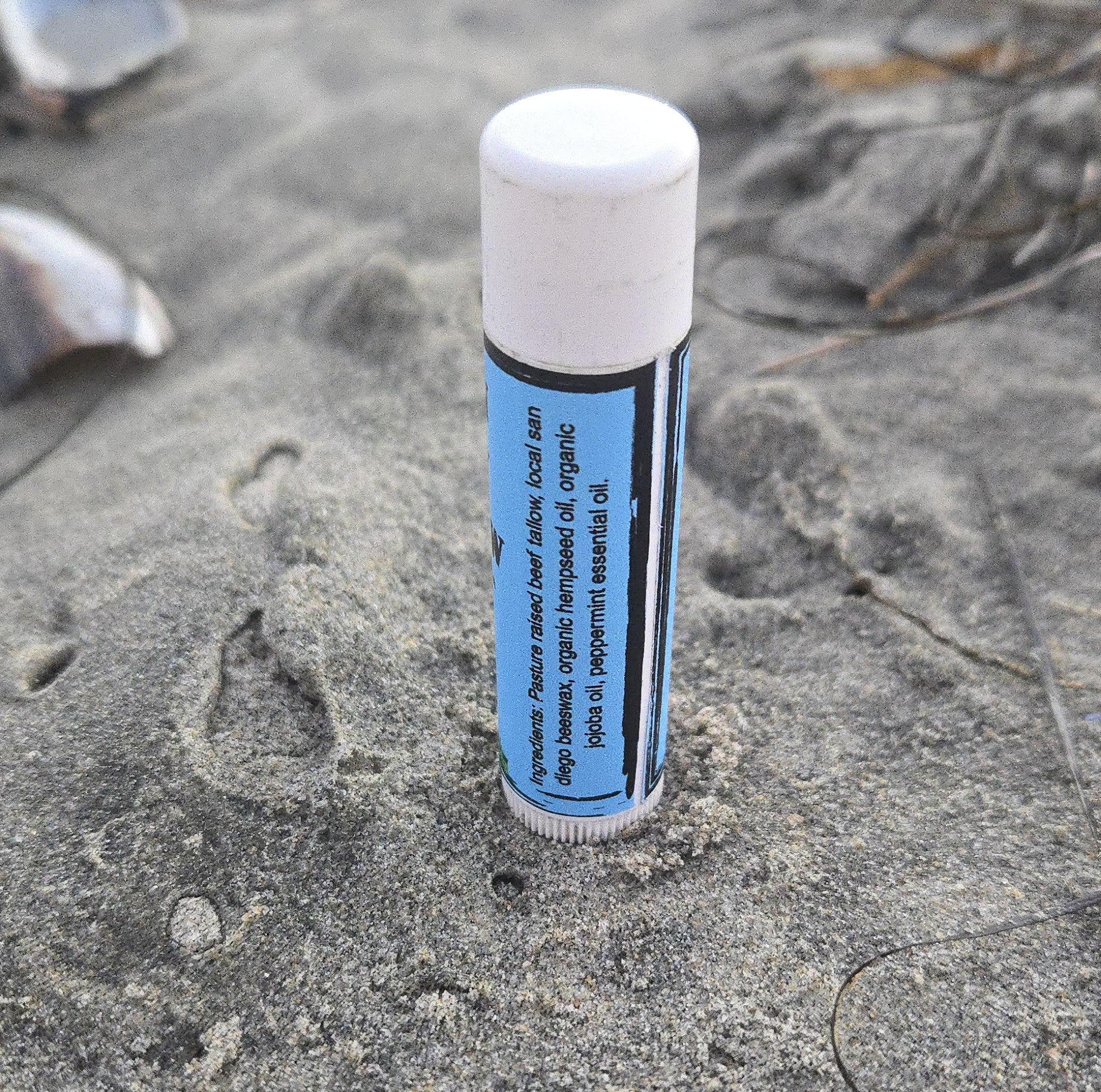 Ingredients: Pasture raised beef tallow, local San Diego beeswax, organic hempseed oil, organic jojoba oil, peppermint essential oil.
